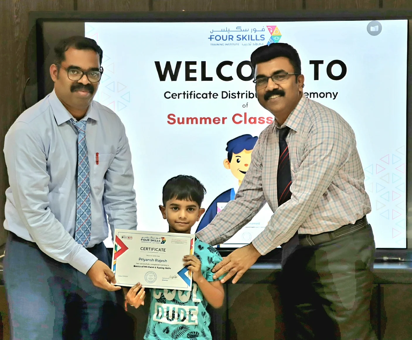 The Four Skills Training Institute, Fujairah, successfully concluded its Summer Camp 2025 with a vibrant Certificate Distribution Ceremony on 28th August 2025. Over two months, students received training in General English, Computer Skills, Public Speaking, and Leadership Development, gaining valuable knowledge and confidence.